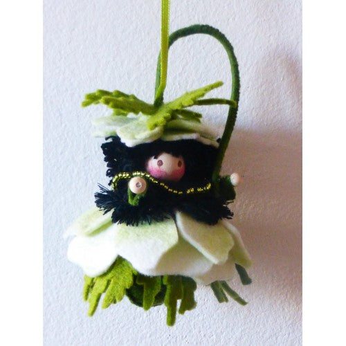 Dit leuke bloemenkindje is gemaakt van o.a. sprookjesvilt.