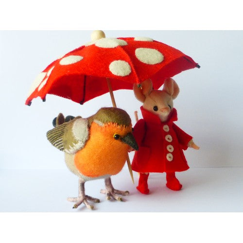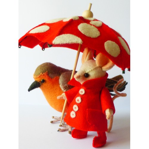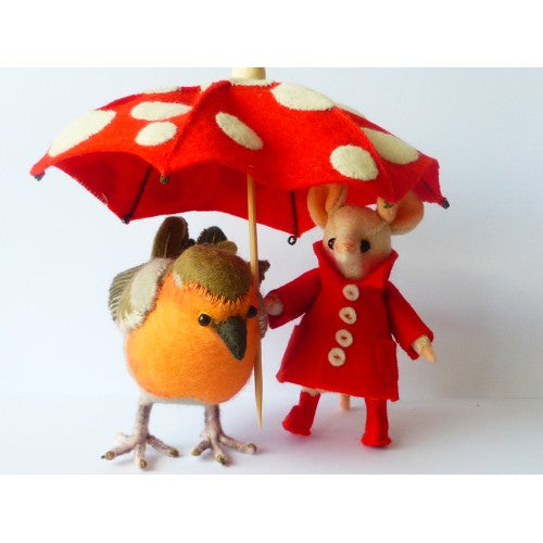 En het roodborstje is ook leuk alleen onder de paraplu.