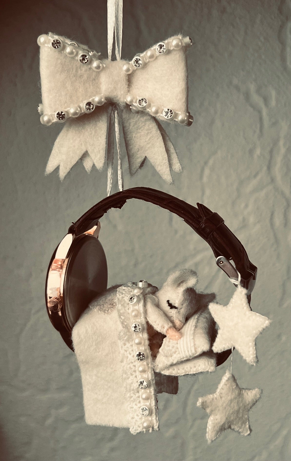 Maak met dit pakketje een muisje in een bedje in/op een horloge.
